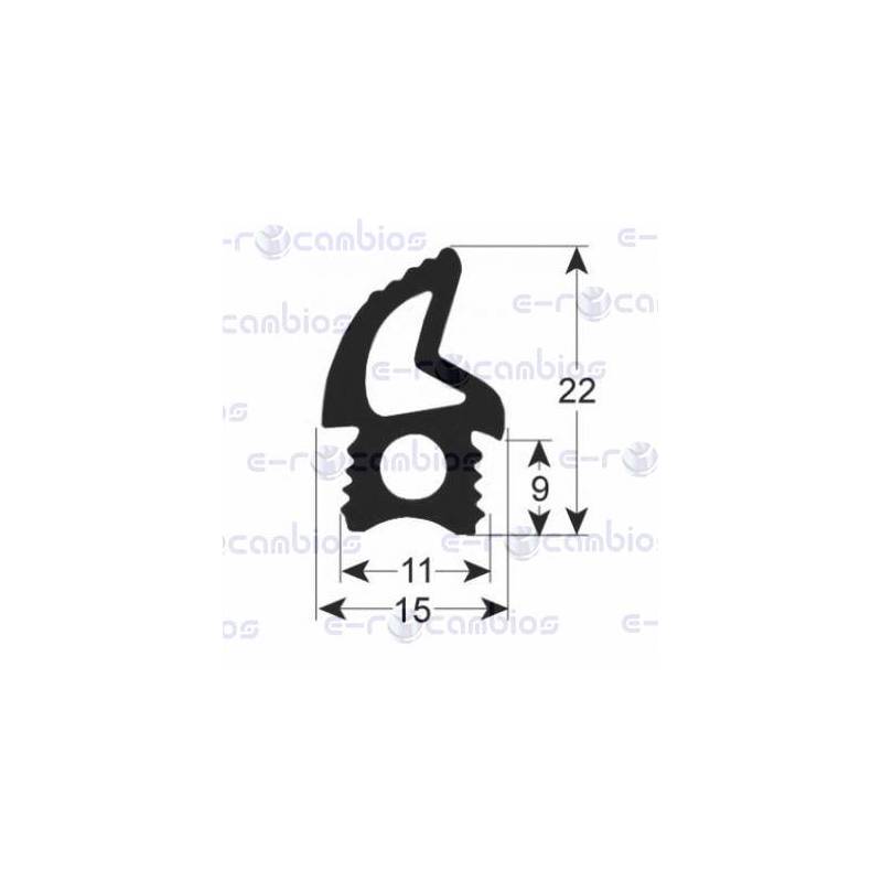 Perfil: E17200SNE01, Largo Total Burlete: 1000 mm , Largo Perfil (prL): 17 mm . Alto Perfil (prh): 20 mm , Admite Tira Imán: No , Material: Silicona
