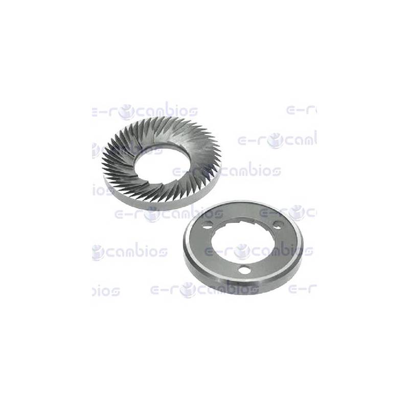 Datos Técnicos: FRESA SUPERIOR 3 TALADROS + INFERIOR LISA 3 HOLES UPPER BLADE + FLAT LOWER BLADE MOLINO MOVIE