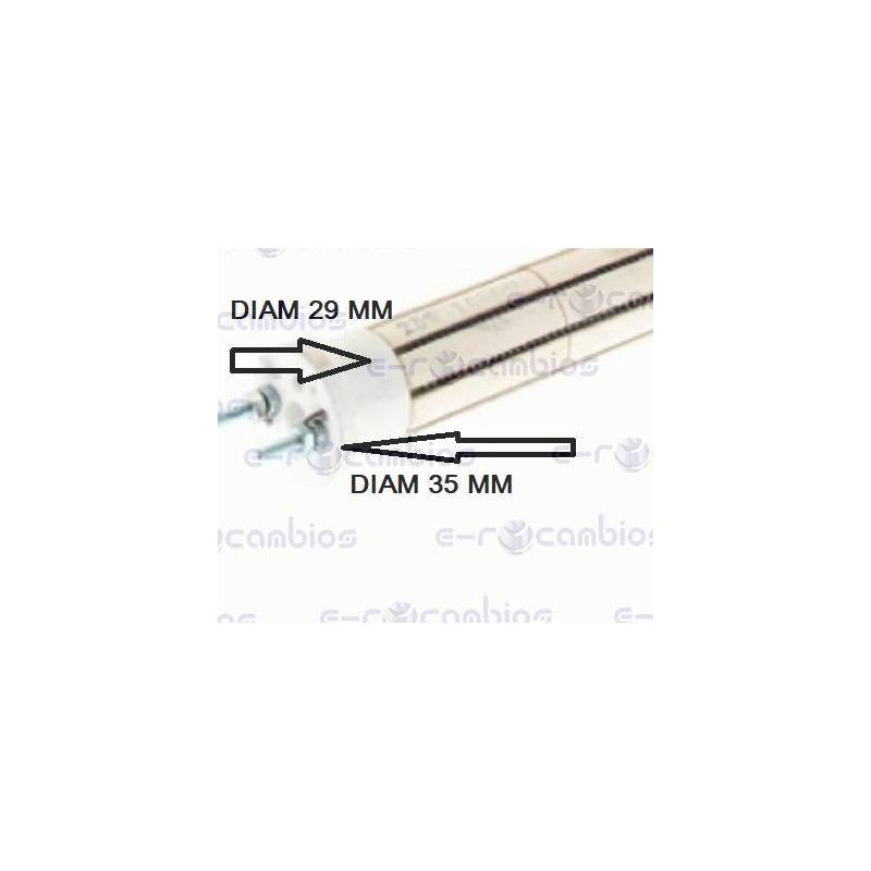 Resistencia cerámica termo. 2000W 220V. Ø 29 x 520 mm. 10 piedras.