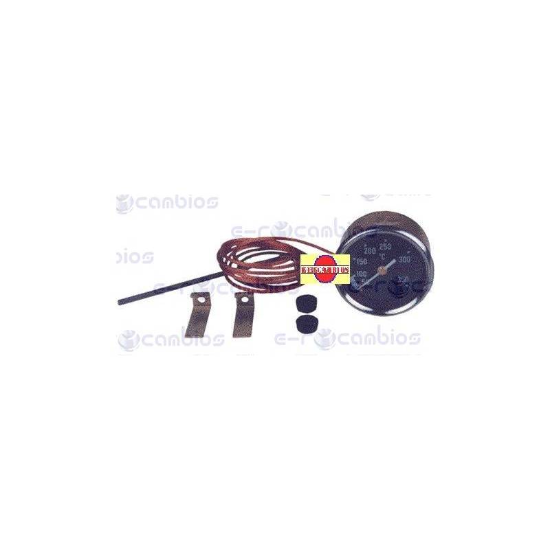 Termómetro aguja para horno a convección. Mod. SM Ø 60 mm metálico. Esfera negra. 50º a 350ºC. Capilar 1500 mm. Bulbo Ø4x104 mm. FOEMM, MARENO, ALPENINOX, LAINOX.